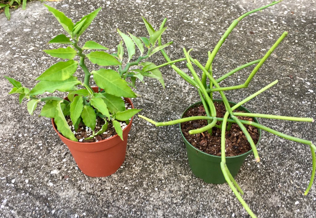 Your local nursery probably sells Euphorbia plants but they are usually among the higher priced plants. Amazon can connect you with online nurseries who sell pencil cactus and redbird cactus plants. A great way to start growing Euphorbia plants is to get a cutting from a neighbor or friend. If you live in Florida, take a walk around your neighborhood. Chances are, someone is growing Euphorbia. Compliment their lovely plant and they will probably let you take a few cuttings. (Wear gloves, avoid the white sap.) Let the stem dry for a day to two, then plant the cutting in a small container of perlite or potting soil. You can also buy fully rooted Euphorbia plants at the Grow Earthy booth at the Beaches-area outdoor markets. Check the event schedule on the home page.