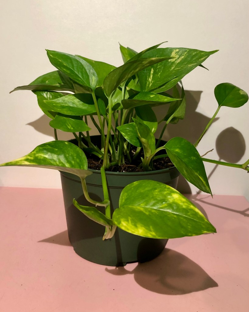 Pothos, specifically golden pothos, is called devil’s ivy because it is nearly impossible to kill. Its resilient leaves remain green even in very low light. It is also poisonous and will cause nausea if ingested by humans or pets. The golden pothos variety tested in the NASA study was shown to remove benzene, xylene, toluene and formaldehyde from indoor air.