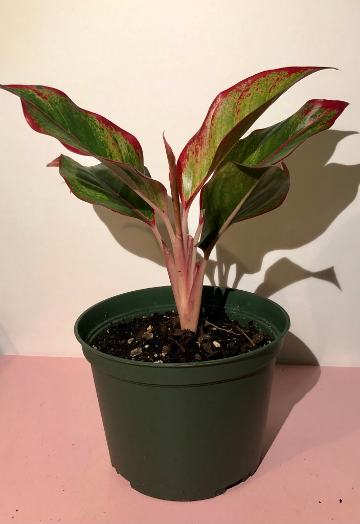 This tropical evergreen grows in shades of green, silver, and red. They are known for their resilience, preferring medium indirect light but adapting well to all lighting conditions except full sun. They want to dry out between watering because the roots do not like soggy soil. Chinese evergreen are shown to remove benzene and formaldehyde from indoor air.
